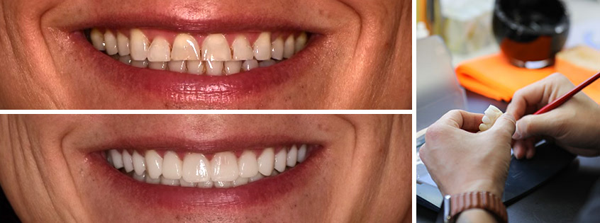 Aesthetic evaluation of you with your temporary veneers. You live with your temporary veneers for 2 weeks while our Master Ceramist fine tunes and sculpts your new smile.